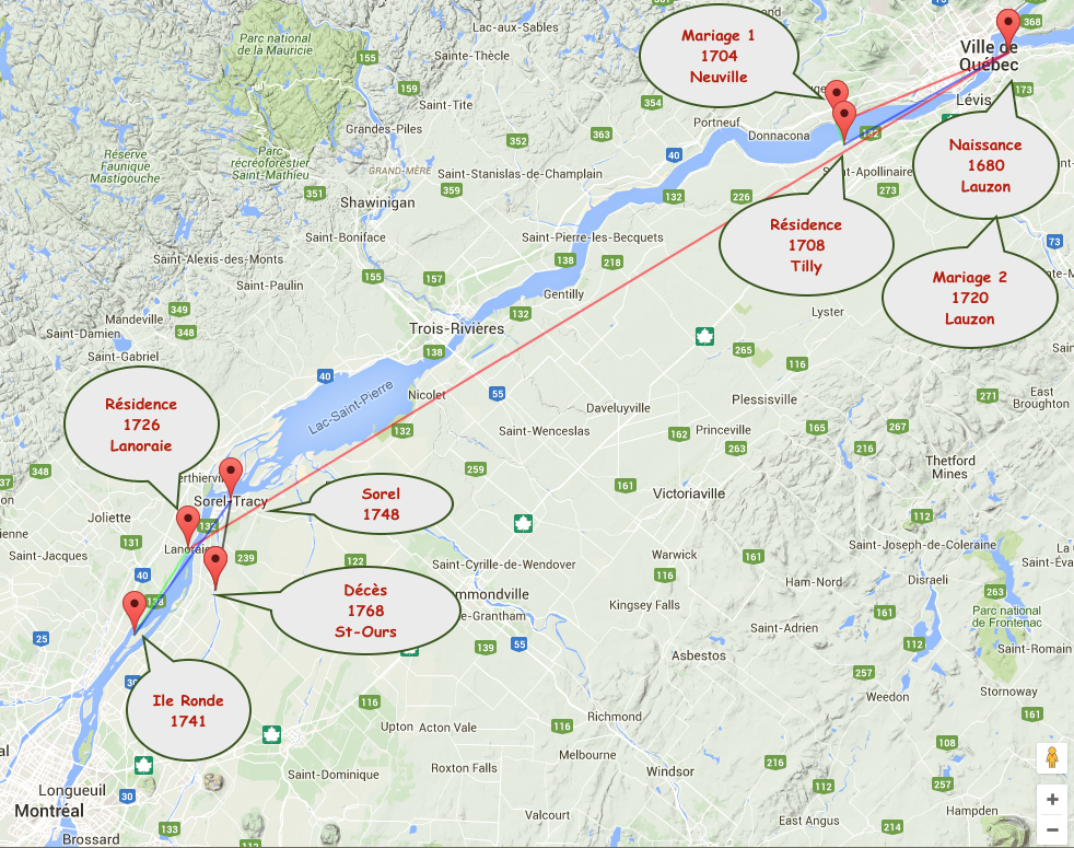 | 1713-1725 | - | Côte de Lauzon dont son deuxième mariage |